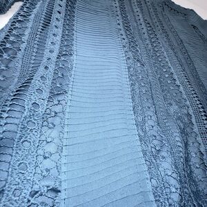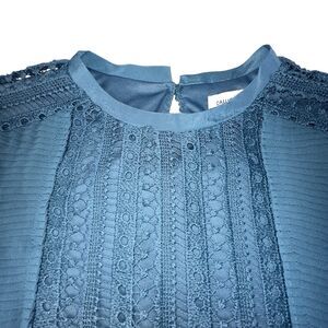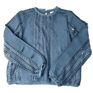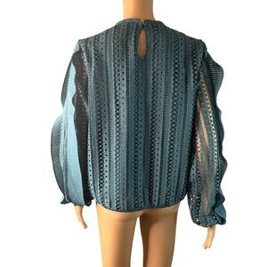 Calligraphie Teal Laced Ruffles Long Sleeve Blouse Top Size Medium