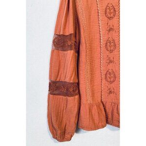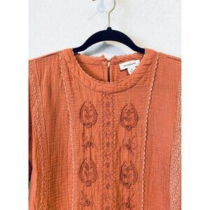 Calligraphie Top Womens Medium Embroidered Crochet Ruffle Hem Peasant Boho