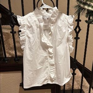 Elegant white blouse with ruffle details. Perfect for any occasion. Lightweight and stylish.
