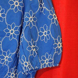 Calligraphie Women's Blouse Embroidered V-neck Button Down Blue White Size Large