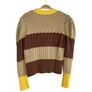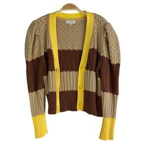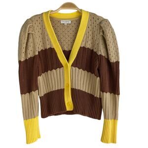 Calligraphie Y2K Rugby Striped Cardigan Sweater Women XL Brown Yellow Academia