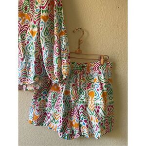No flaws. Size small for both. Linen blend. Blue has the cute tassel front and shorts have the pockets.