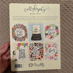 New and never used Calligraphy Made Easy tutorial workbook by Ashley Gardner. Instructions, worksheets, and little projects to practice the art of hand lettering.
