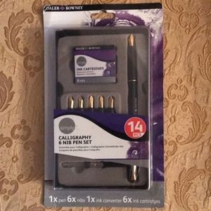 Learn an outstanding new hobby with this NWT Calligraphy set. By Daler Rowney, the set includes a pen, 6 nibs, 1 ink converter and 6 ink cartridges. Give it a try😎