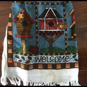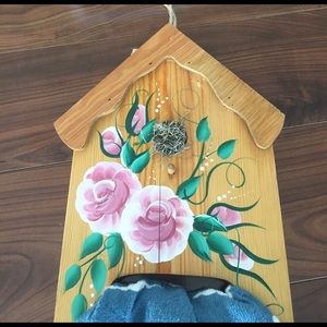 Adorable and beautiful bird house towel hanger. Hangs anywhere in your house. Beautifully painted flowers and actually has a nest in center! Unique and super cute! Great for yourself or as a gift for your favorite bird lover!