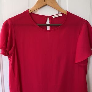 Floaty fabric with ruffled cap sleeves Beautiful hot pink color 100% polyester