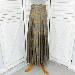 Calliope Vintage Jewel Damask Print Pleated Maxi Skirt Taupe