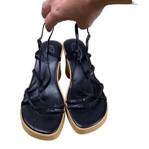 Callisto Black Sequin Strappy Platform Sandals Chunky Heel Party Size 8 EU 39