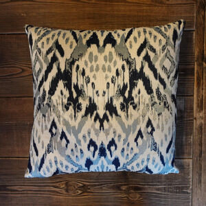 Item: Square decorative throw pillow with an ikat-style woven pattern - High end luxury duck feather down