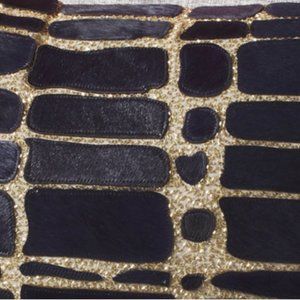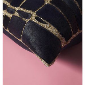 Callisto Home Navy Blue Gold Beaded Hide Accent Pillow NWT