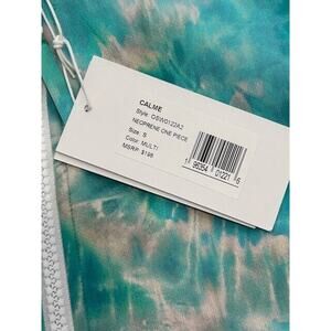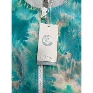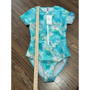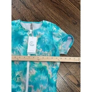 Calme Johnny Was Neoprene Swimsuit Front Zip Short Sleeve Tie Dye Blue Small NEW