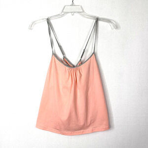 Calme Johnny Was Night And Day Tank L Peach Gray Trim Criss Cross Back NWOT
