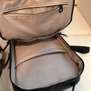 Leather backpack with 15in laptop pocket and multiple pockets in main compartment. Small signs of wear on the back straps (shown in pictures).