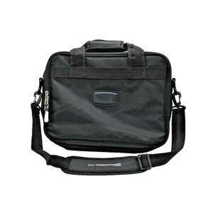This Calpak laptop briefcase is perfect for the busy traveler. Its lightweight design and adjustable strap make it easy to carry around, while the black finish gives it a sleek and professional look. The zip closure ensures that your laptop and other belongings stay secure, and the detachable shoulder strap adds versatility to this bag. With a unisex style and solid pattern, this briefcase is suitable for anyone looking for a reliable and stylish way to carry their laptop and other essentials. The exterior and interior are both black, and the hardware is silver, giving it a polished appearance. Whether you're heading to work or school, the Calpak Haven is a great choice for a travel carry-on.