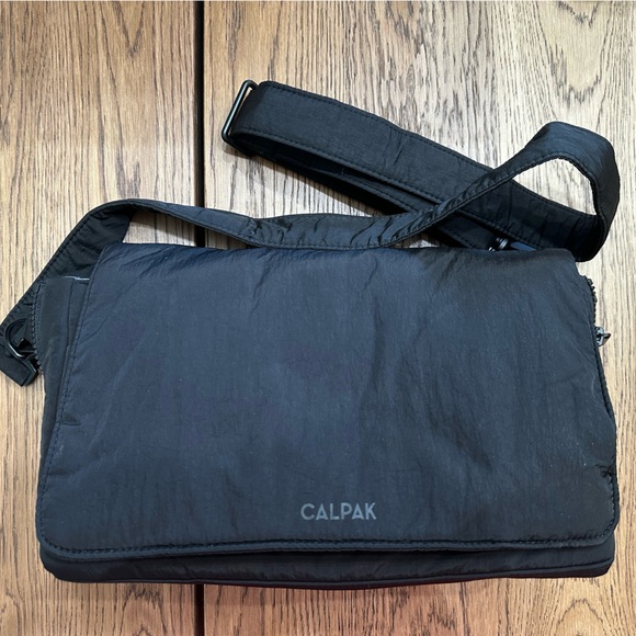 Like new Calpak Convertible Stroller Caddy Crossbody. Comes with stroller straps as well :) has 2 cooler bottle holders on the inside. Super convenient and nice when you don't want to lug around a full diaper bag. I just don't use it enough.