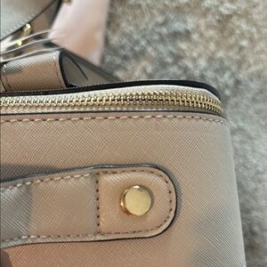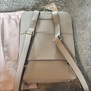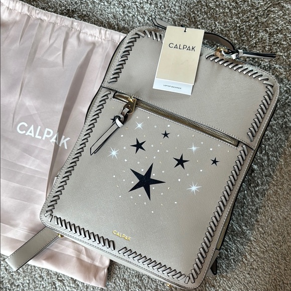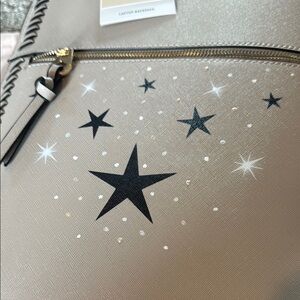 Stylish gray backpack with star design. Features front zipper pocket. Elegant stitching detail. Perfect for daily use.