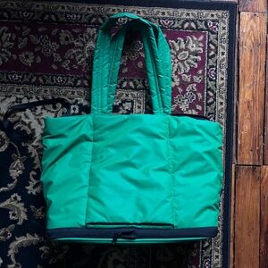 Great, roomy travel bag. Used only a couple of times but my work is changing, so I won't need this travel bag anymore. Nice bright green color.