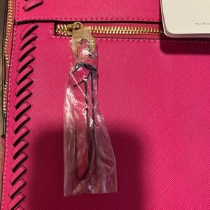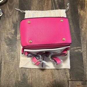 The most perfect, cutest small backpack! This Calpak pink backpack combines a vibrant hue with a modern, structured design, featuring decorative whipstitch detailing and a convenient top handle for easy carrying.