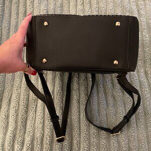 Whipstitched braided trim with a rounded silhouette crafted from durable faux/vegan leather. Features 2 interior as well as an exterior pockets keep essentials organized, exterior sleeve slips over suitcase handles.