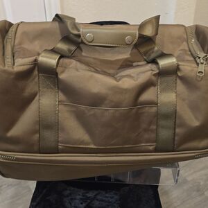 Stylish and durable, the Calpak olive green duffel bag is perfect for travel or gym use. Its spacious design and sturdy construction make it a reliable choice for any occasion.