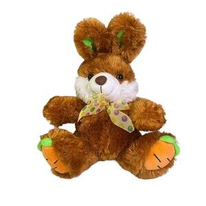 Calplush Bunny Rabbit Plush Carrot Feet Stuffed Animal Easter Sheer Pastel Bow.