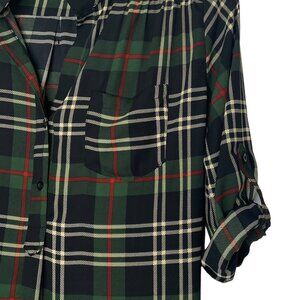 Cals Womens Plaid Blouse Size Small Semi Sheer Lightweight Adjustable Sleeves