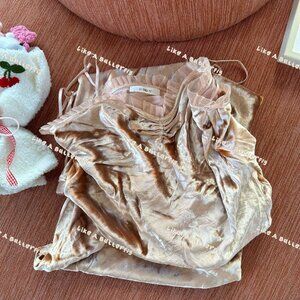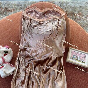 Rendered in sumptuous velvet, the Calsi Dress—one of our co-founder Katherine’s favorites, which made its debut this past spring—is our take on a ‘30s-style slip dress. It features ultra-skinny silk satin straps, bust darts for structure, and shirring at the bust for a subtle sweetheart neckline. A fitted waist gives way to an A-line skirt that falls to mid-calf, while petite silk organza ruffles adorn the neckline and hem.
