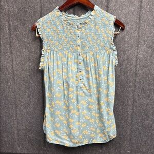 This sleeveless blouse from A New Day features a vibrant yellow and gold color palette, enhanced by a smocked design and ruffled bib collar. Crafted for comfort, its lightweight fabric and flowing silhouette make it an ideal choice for casual outings.