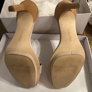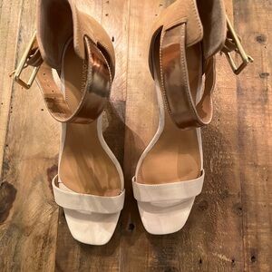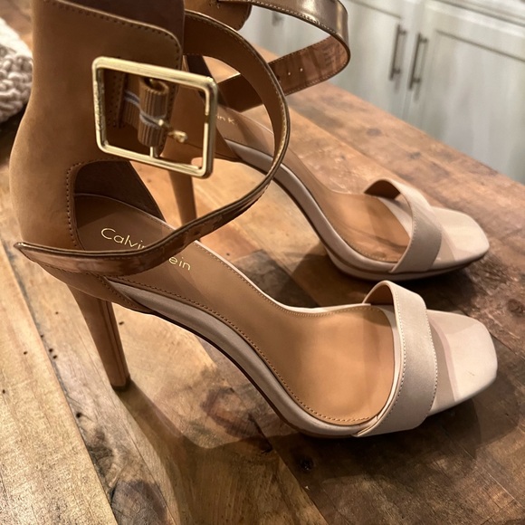 Only work once! These are Calvin Klein heels in the original box. Nude, white and rose gold metallic. Size 9 women’s.