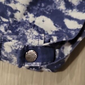 Calvin Klein blue and white tye dye shorts. Snap back pockets and angled front. Preowned good condition.
