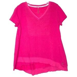 Calvin KLEIN PERFORMANCE Barbie Pink Cotton V-Neck Asymmetrical Top - Size Large