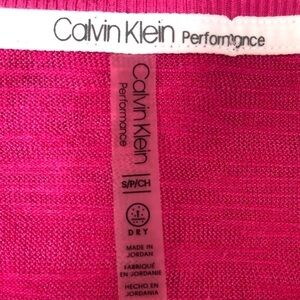 CALVIN KLEIN PERFORMANCE - Pink Cotton Blend V-Neck Short Sleeve Asymmetrical Hem Top - Size Large. No visible flaws. Excellent pre-owned condition.