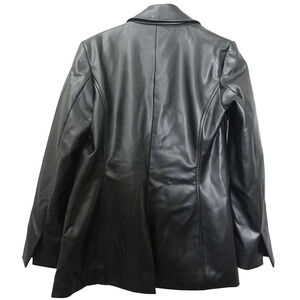Single breasted with streamlined tailoring. This slim faux leather blazer is framed with notch lapels at the neckline and lined for easy layering.