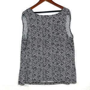 Calvin Klein 0X Plus Cowl Neck Sleeveless Top Black White Geometric Work Formal