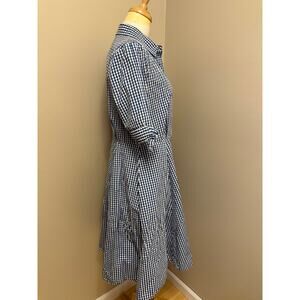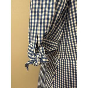 Calvin Klein 100% Cotton Blue Gingham Button Front Tie Detail Sleeve Dress Sz 10