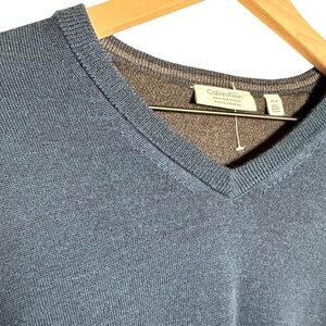 Calvin Klein sweater, merino wool pullover, classic navy knit, lightweight V-neck sweater, fall layering sweater, timeless essentials, minimal menswear