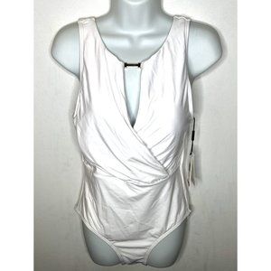Calvin Klein $108 High Neck Tummy Control One Piece Swimsuit White Size 10
