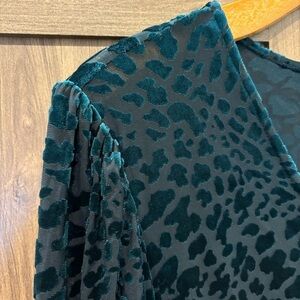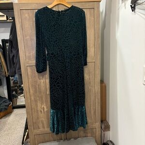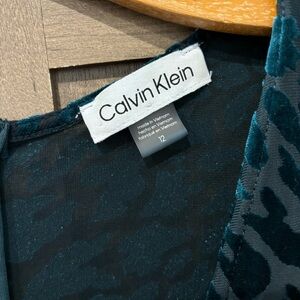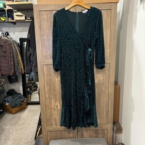 Calvin Klein 12 MIDI Dress Velvet Burnout Emerald Green Animal Print Faux Wrap