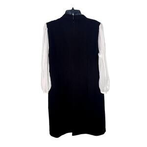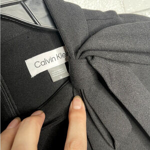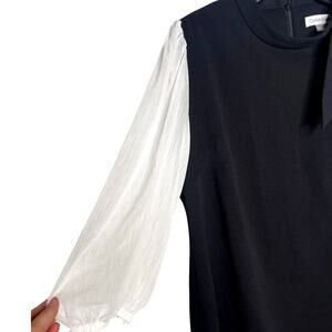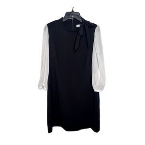 Calvin Klein 14 Illusion $99 Bow Tie Neck Sheer Long Sleeve Dress Black White