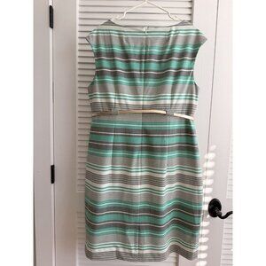 Calvin Klein 16W Sheath Dress Green Gray Stripe Belted Knee Length Lined Career