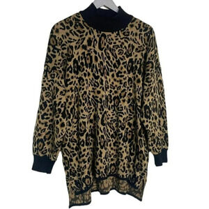 Calvin Klein 1X plus-size leopard print mock turtleneck sweater