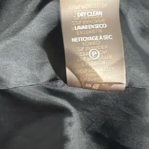 Good preowned- worn a couple times. Pockets are still sewn closed and will need to be opened to use but back vent has been opened. Gunmetal hardware on buttons and logo bar on pocket. Princess seams give a professional tailored vibe
