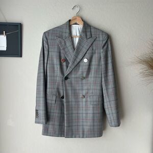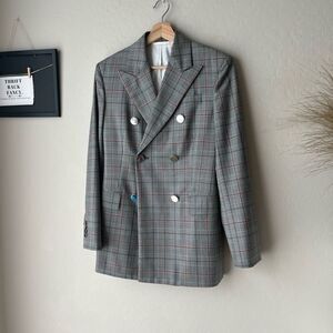 Calvin Klein 205W39NYC Glen Plaid Fine Worsted Wool Double Breasted Blazer Sz 2