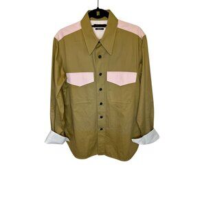 Calvin Klein 205W39NYC by Raf Simons Fall 2018 shirt, Made in Italy runway piece. Khaki / baby pink detailing - signature piece from Raf collection whilst shortly at CK house (model: 183cm/83kg - size: L/50IT)
