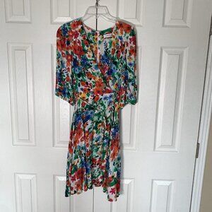 Calvin Klein 3/4 Sleeve V-Neck Colorful Floral Faux Wrap Dress Size 4