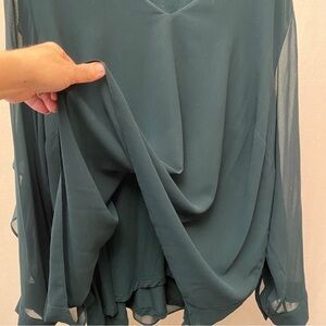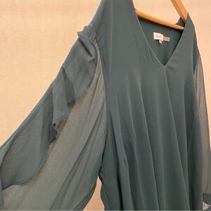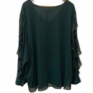 Calvin Klein 3X Top Semi Sheer Dark Green V Neck Flowy Ruffles Long Sleeve