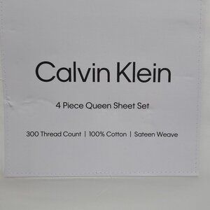 Calvin Klein 4 Piece Queen Sheet Set 100% Cotton Sateen Fits Mattress 18" Deep