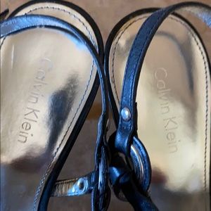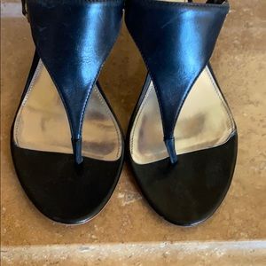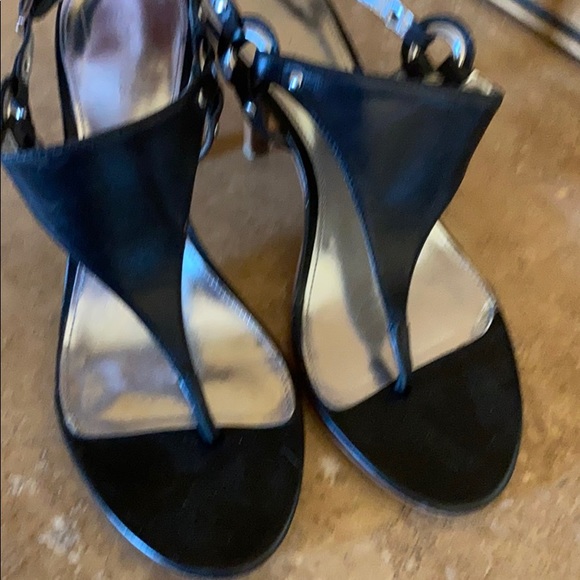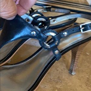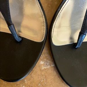 Like new! Worn one time sandal! Soft black leather with silver tone buckle and accent!