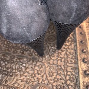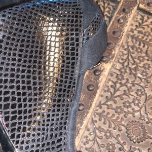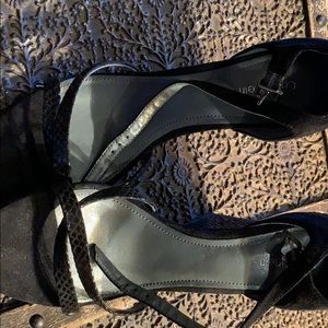 Calvin Klein Camila E5136 black velvet heels size, ankle strap, wedge heel.