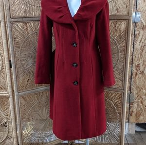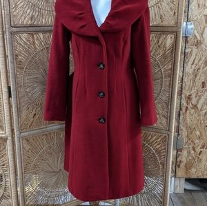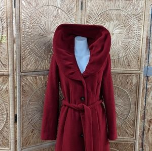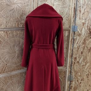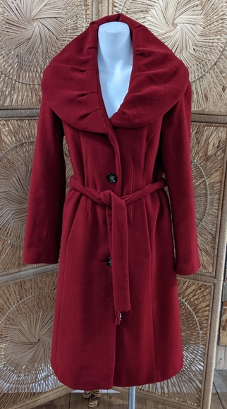 Beautiful red coat with wide large collar perfect for the breezy fall and winter days, button closure, and belted. This coat is dry clean only, which I have already had done for you so it's good to go as soon as you get it😊 measurements are